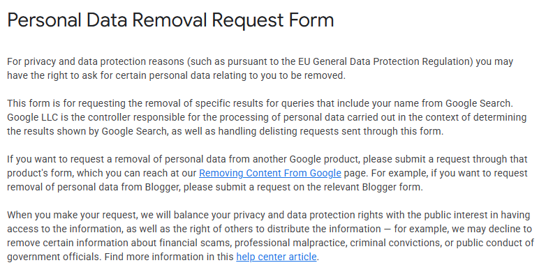 Request Removal: Google’s Results About You